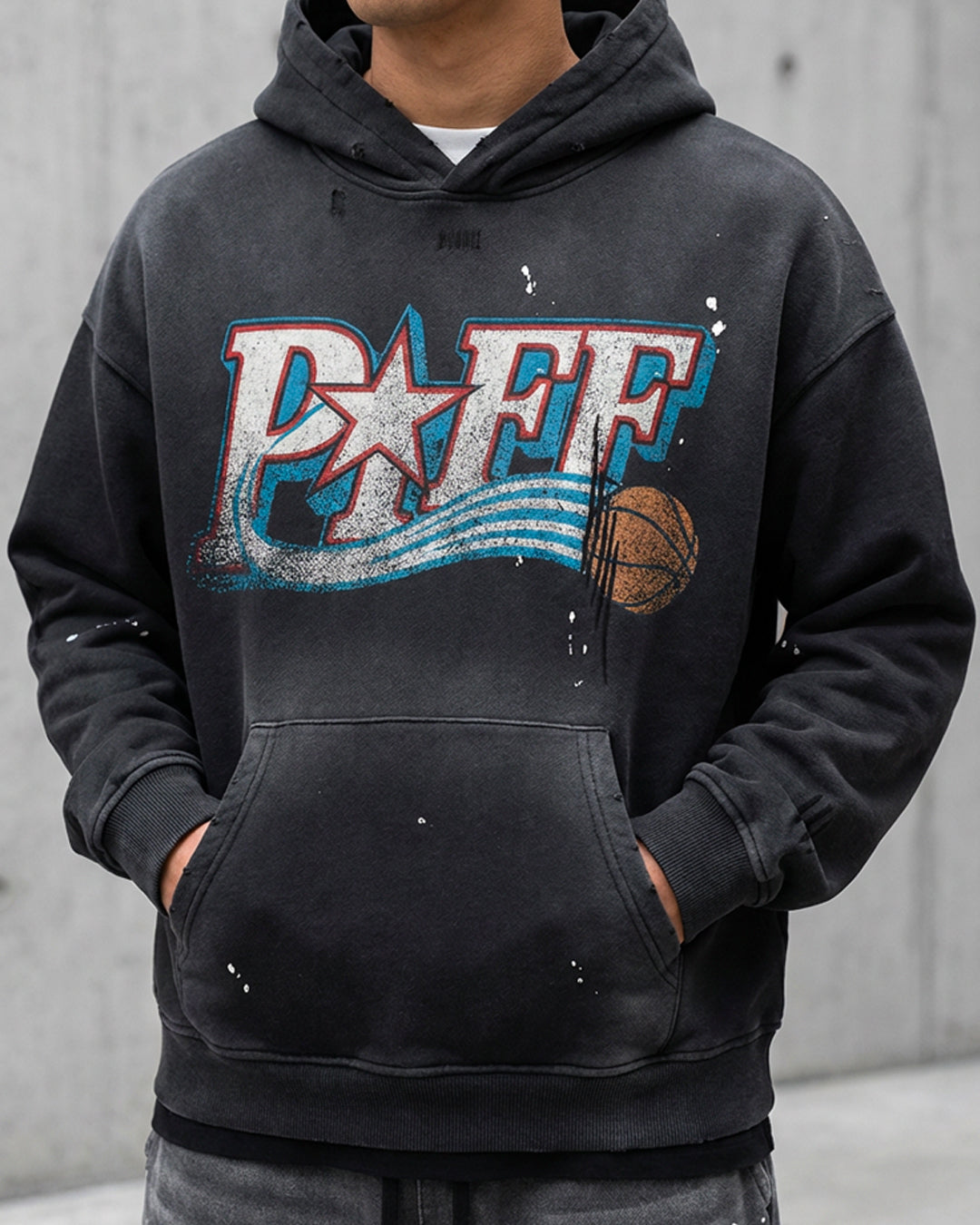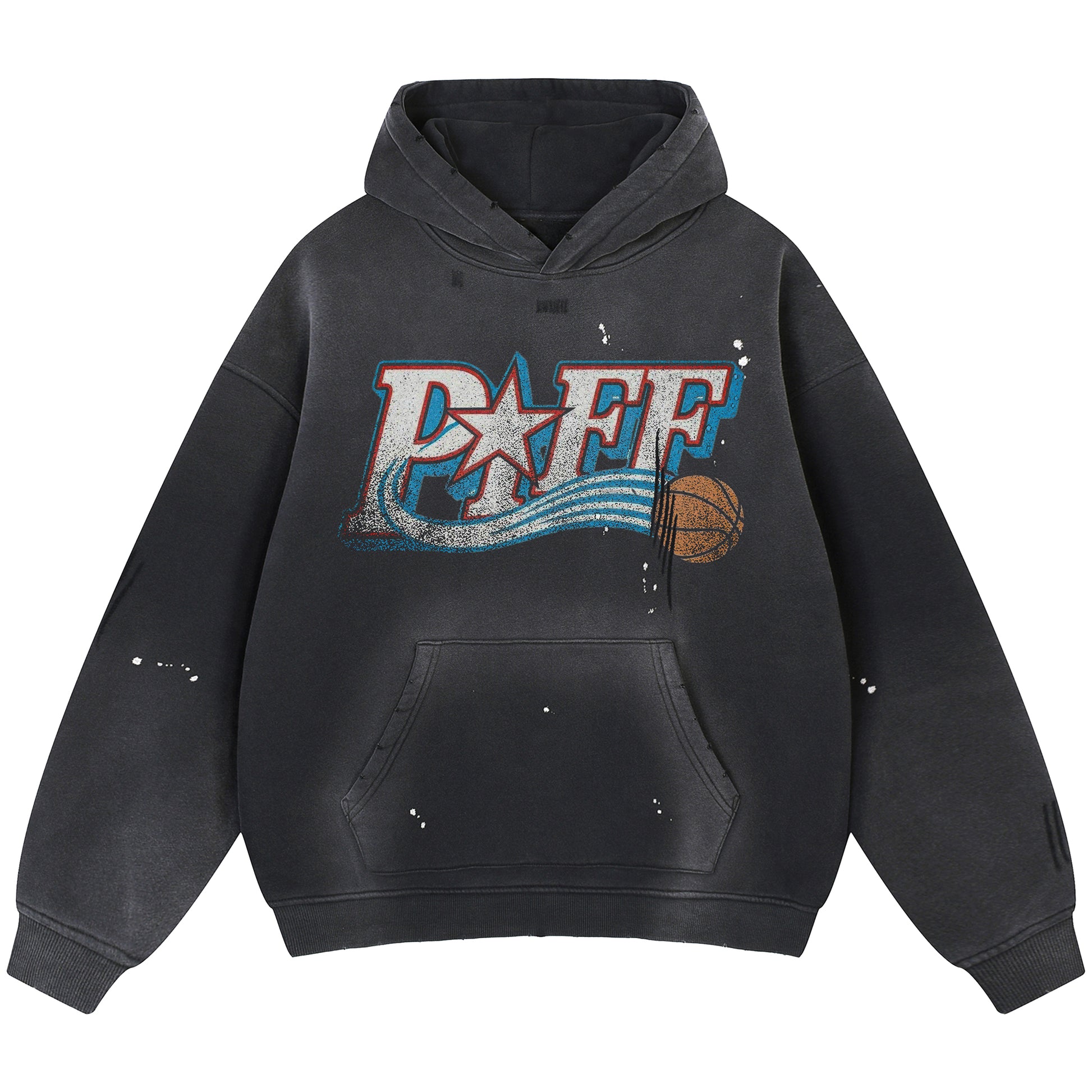 Piff All Star Hoodie Vintage Washed Frayed Fleece Hoodie.