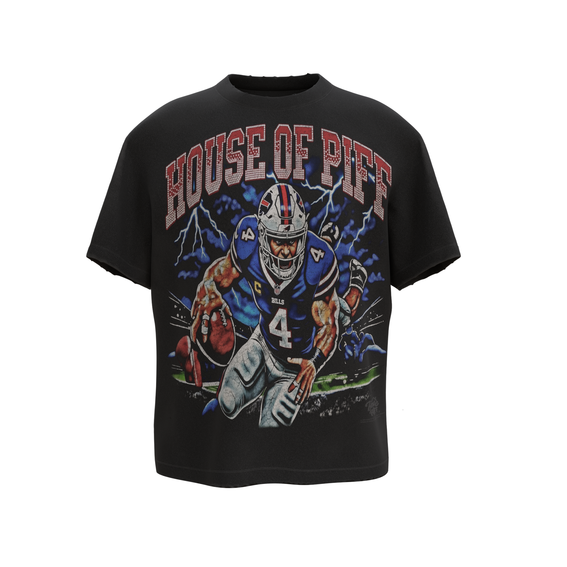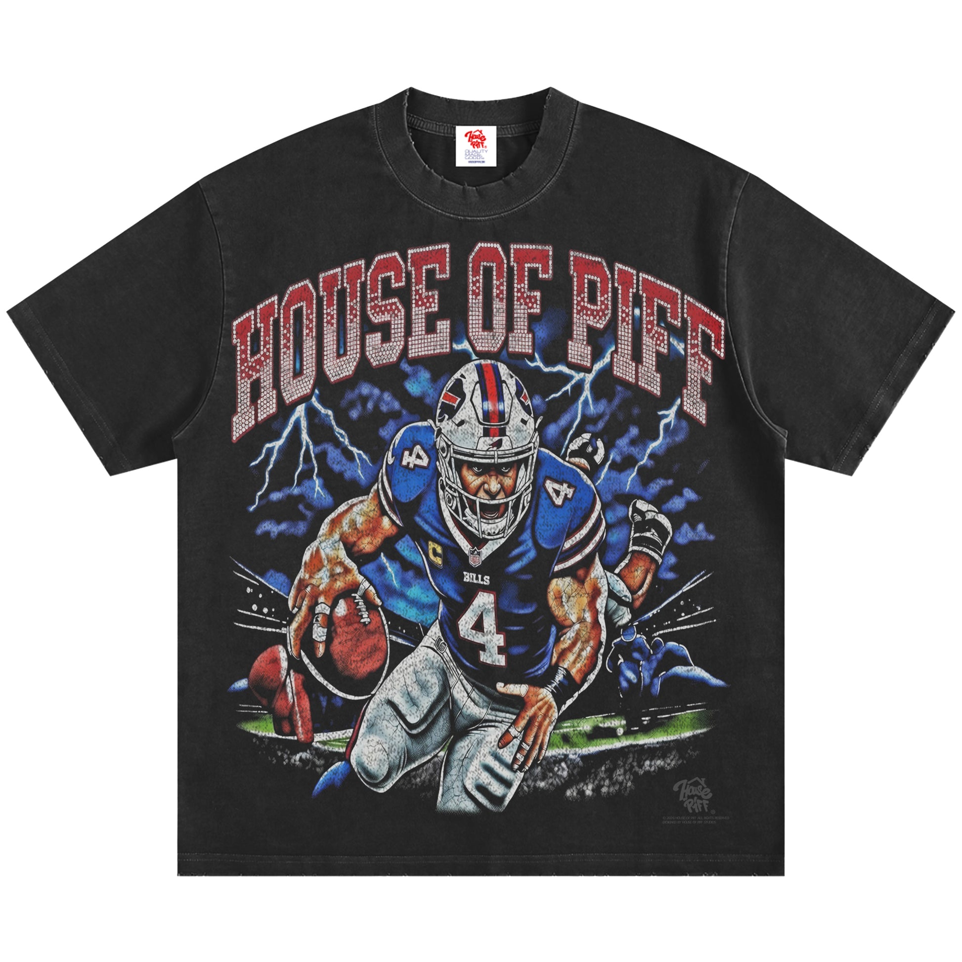 Celebrate your Bills pride with this relaxed vintage-inspired tee featuring bold "Buffalo" and "House of Piff" graphics front and back. The soft, durable fabric is treated with an authentic vintage wash and frayed detailing that gives it that coveted worn-in character from day one. Whether you're heading to the game or just showing your team spirit, this tee delivers comfort and style that stands up to regular wear. A versatile essential for any fan's rotation.