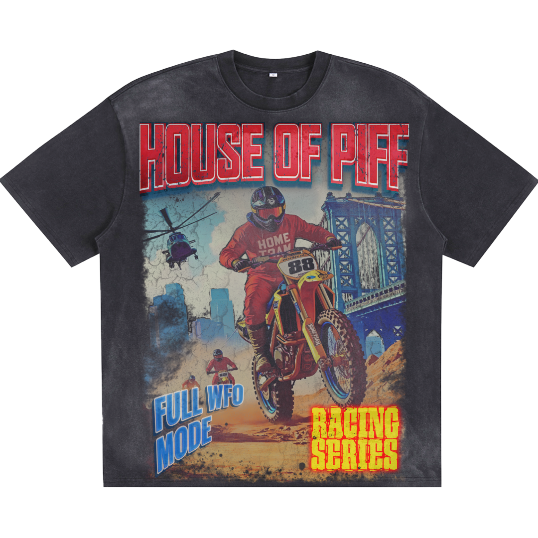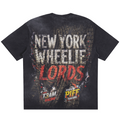 The New York Wheelie Lords Shirt is a collaborative piece between HomeT3eam and House Of Piff, blending unique design elements from both brands. Crafted from 100% cotton with a vintage washed effect, this shirt offers a relaxed, worn-in feel. Its loose fit, round neckline, and drop shoulder short sleeves provide comfort and style, ideal for casual and streetwear looks year-round. This handcrafted shirt ensures each item is one of a kind, embodying the artisanal spirit of the collaboration.